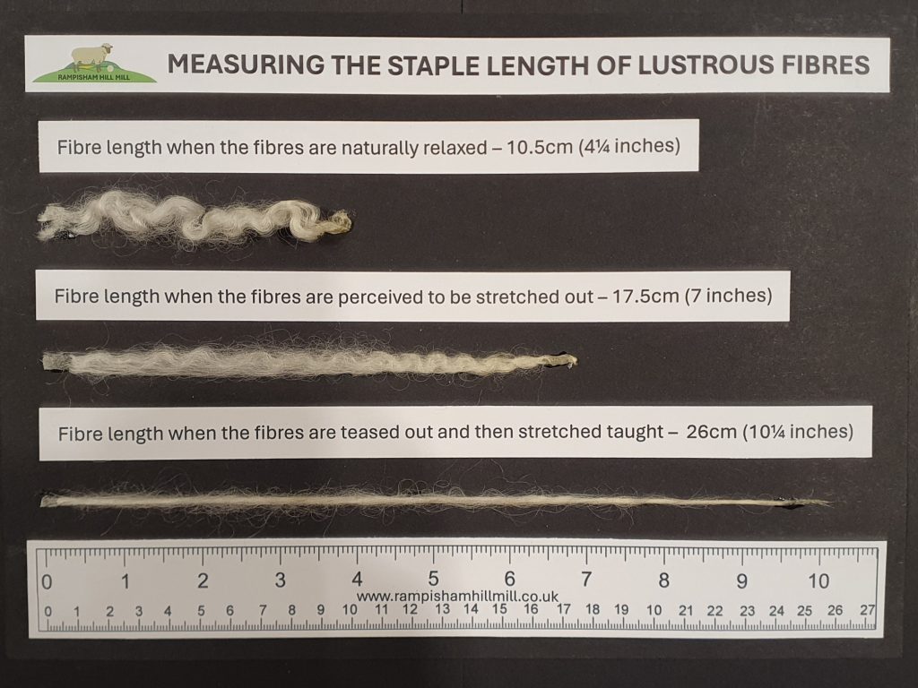 Measuring the staple length of your fibre correctly is paramount, as it can dictate which processing options will be available for you and your type of fibre. It is particularly important that this measurement is done accurately for lustrous breeds such as: Cotswold, Gotland, Romney, Teeswater, Wensleydale, Leicester Longwool, Lincoln Longwool, Valais Blacknose, Grey Faced Dartmoor, Devon & Cornwall Longwool, as well as cross breeds with longer fibres etc.